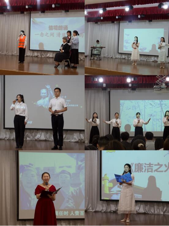 为深入学习贯彻习近平总书记关于党风廉政建设、廉洁文化建设等重要论述精神,引领全院师生特别是党员领导干部保持高尚品格和廉洁操守,积极营造崇德尚廉、崇廉拒腐的良好风尚,树牢“以廉为美、以廉为乐、以廉为荣”价值理念,六合彩开奖记录 党委于6月1日下午在滨湖校区大学生活动中心举办“清正在德,廉洁在志”廉政文化作品诵读活动。校党委常委、纪委书记、监察专员曹灯明,校党委委员、纪委副书记詹灵杰,校纪委办公室主任葛力健出席活动,六合彩开奖记录 处科级干部、师生党员、民主党派教师代表等参加。